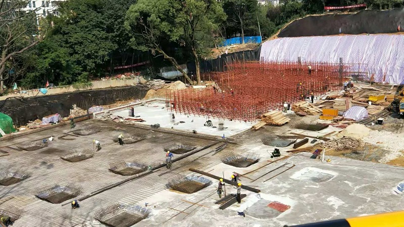 目前,項目北入口地下車庫主體結構即將封頂,廣場鋪裝、綠化施工正在穩步推進,各主游路路基及級配碎石層已施工完成,游路水穩層及綠化施工正在緊鑼密鼓的進行。