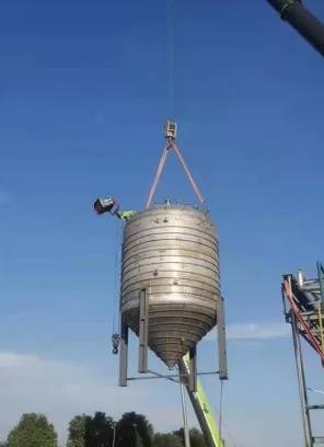 據悉,該分離水儲罐高7.5米、直徑4.4米,共有2臺,是項目首項設備吊裝。由于現場安裝環境復雜、就位難度大,使得儲罐吊裝難度高。為確保此次吊裝工作順利完成,項目部多次組織召開協調會,從吊裝方案設計、吊車選型、到貨設備的實際數據測量,都做了周密計劃與準備。11月13日上午,經過3個小時的緊張施工,分離水儲罐設備吊裝就位工作順利完成。