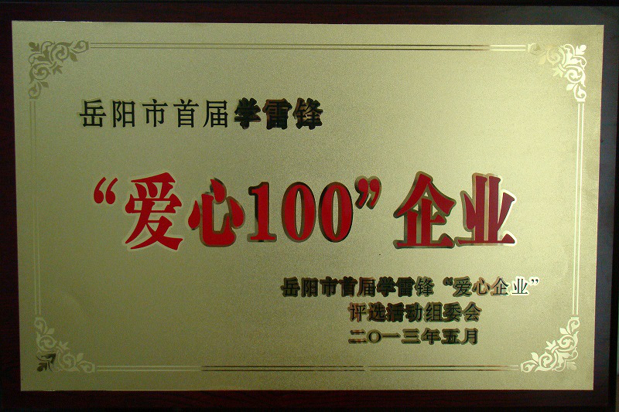 公司被評為岳陽市首屆學雷鋒“愛心100”企業